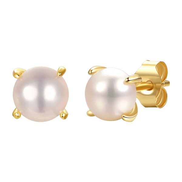 Genevive 14K Gold Plated 6mm Round Genuine White Freshwater Pearl Solitaire Stud